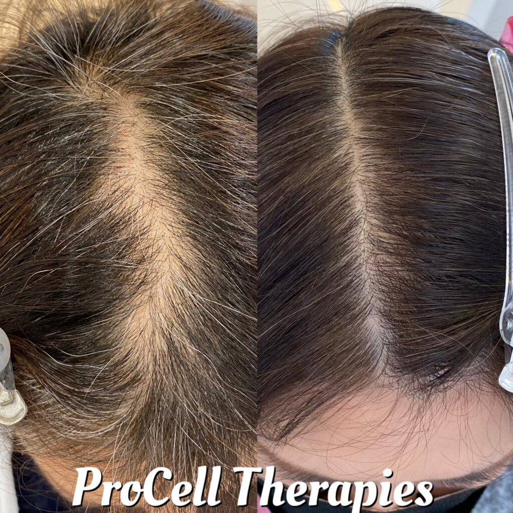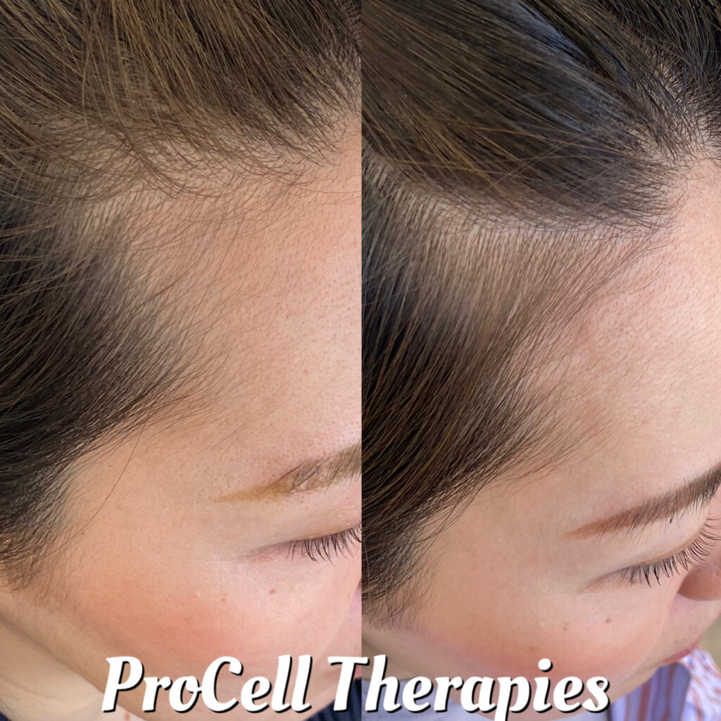 当店でも育毛ヘッドスパを取り入れておりましたが、頭頂部は生やすことはできても、生え際は非常に難しいのが実情。よくSNSなどで育毛の症例を見るときも頭頂部の写真が多いのはどのサロン、病院も同じ。それだけ生え際は生えにくい箇所なのですが、、、しかし、プロセルセラピーズは毛穴さえ残っていれば生え際にも効果を発揮しています。